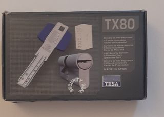 Cilindro de alta seguridad TESA TX80. - Modelo: TX80 - Incluye 5 llaves patentadas. - Tarjeta de propiedad. - Fabricado en España.