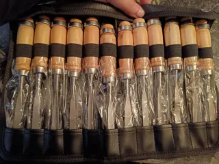 Set de 12 formones nuevos a estrenar - Cada formón de un tamaño o forma diferente vienen envueltos individualmente en plástico protector.
