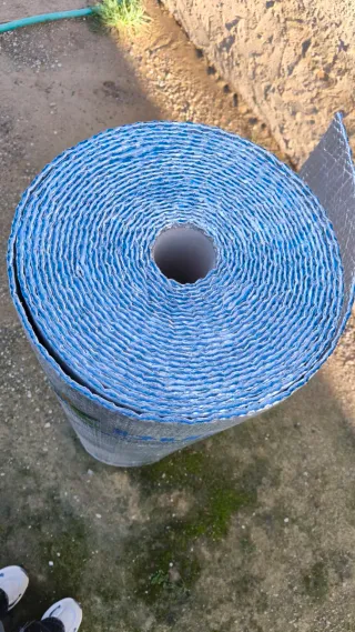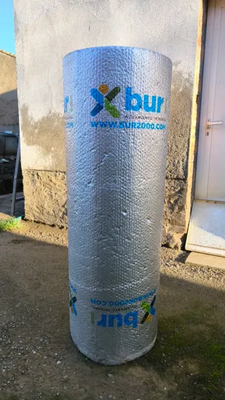 AISLAMIENTO TÉRMICO REFLEXIVO AIR BUR TERMIC 120cm alto 40cm diametro rollo 16 grossor rollo sin contar tubo 8mm aprox grossor de la hoja Hay aproximadamente 8-9m de largada
