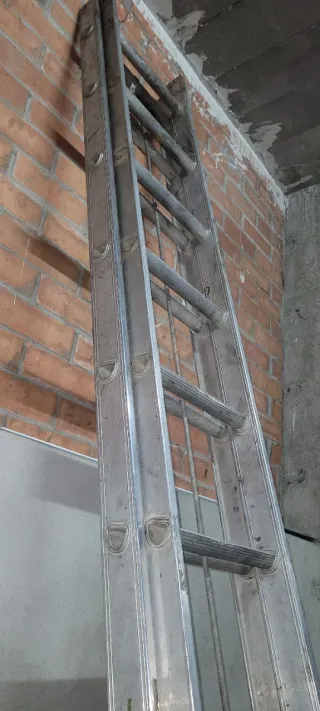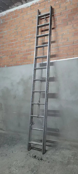 Escalera de aluminio de gran altura, ideal para trabajos que requieran un alcance superior. - Fabricada en aluminio resistente. - Diseño extensible para mayor versatilidad. - Cuerda para facilitar la extensión. - 2×12 peldaños... altura max. 6m