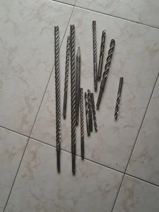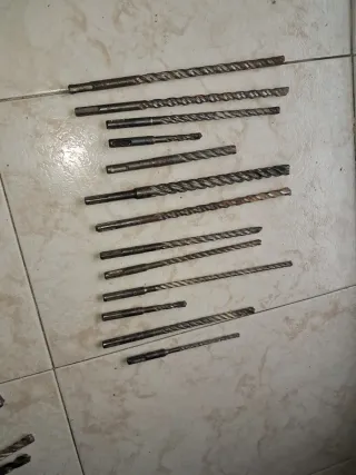 Lote de 13 brocas SDS para trabajos en pared. Incluye diferentes tamaños para diversas aplicaciones. - Brocas SDS para martillo percutor. - Diseñadas para hormigón y mampostería. - Variedad de longitudes y diámetros. 5 brocaa del num12 3brocas del num10y4 del 10 y una broca del num 6 y 1 broca del 14 titales hay 13 brocas sds
