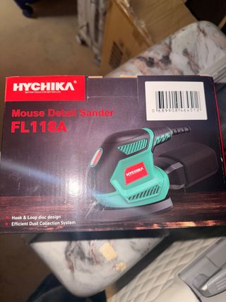 Lijadora de detalle HYCHIKA, modelo FL118A, en su empaque original. - Diseño de disco Hook & Loop. - Sistema eficiente de recolección de polvo.