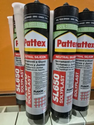 Sellador de silicona neutra Pattex, ideal para juntas y sellados.5 unidades. - Color: Gris (7016). - Modelo: SL650. - Marca: Pattex. - Tipo: Silicona neutra. - Contiene plástico reciclado.