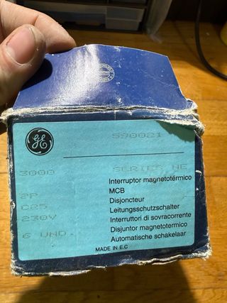 Lote de interruptores magnetotérmicos General Electric. - Modelo: SERIES NE C25. - Voltaje: 230V. - Fabricados en C.E. - Aunque estan descatalogados, son de los mejores que se han fabricado. Nuevos a estrenar.