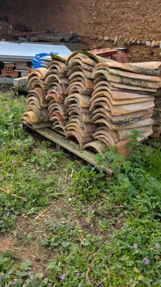 Lote de tejas curvas de barro, ideales para tejados tradicionales. - Material: Barro cocido. - Diseño curvo. - Color terracota.
