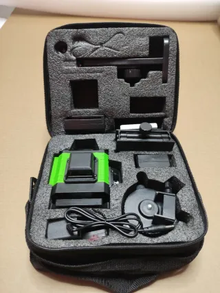 📍 Nivel láser con 16 líneas verdes, tanto horizontales como verticales. 📍- Incluye bolsa de transporte. 📍- Incluye cargador. 📍- Incluye mando a distancia. 📍- Incluye soporte. 📍- Incluye base giratoria. 📍- Incluye placa de metal. 📍- Incluye 2 baterías 📍- Incluye adaptador para batería. 📍- Estado: Nuevo 📍- 4 líneas láser de 360° y control remoto] : Esta herramienta láser proyecta líneas láser 4D. 16 líneas láser se cruzan a 90° y pueden cubrir el suelo, las paredes y el techo de la habitación. Se puede operar mediante control remoto a distancia. hasta 30 metros. -