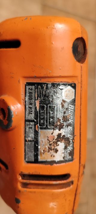 Lijadora eléctrica de la marca EROSKI, fabricada en China en 2005. - Color azul. - Botón de encendido naranja.