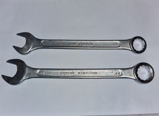 2 llaves fijas las dos juntas 8€ por separadas 5€ cada una.Llave fija 22/22 y llave fija 19/19.