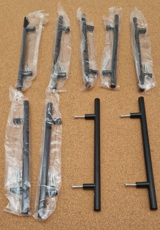 Lote de tiradores negros para muebles de armario o cajones. Son de estilo moderno y elegante. 12 unidades. - Material: Metal. - Color: Negro. - Diseño: Recto con base en T.