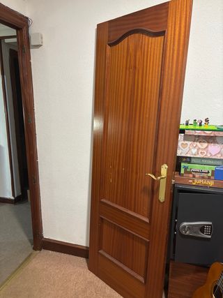 Puertas de madera de interior en perfecto estado. Dos unidades, precio por unidad - Ancho: 72 cm. - Color: Madera oscura. - Diseño clásico con molduras.