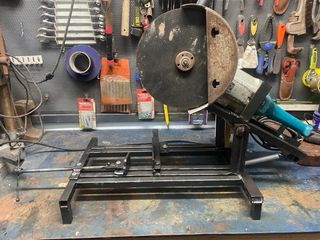 Soporte de amoladora grande con amoladora grande incluida para cortar a 90 y a 45 grados con interruptor en la empuñadura por seguridad 200euros