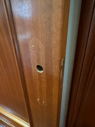 Se venden siete puertas macizas de madera en tono oscuro. Son robustas y de buena calidad. - Material: Madera maciza. - Color: Tono oscuro. - Cantidad: 7 unidades -4 de 72 cm de ellas 2 apertura derecha y las otras 2 ixquierda(una de ellas con cristalera -3 de 62(bsño) y salón doble puerta con cristalera