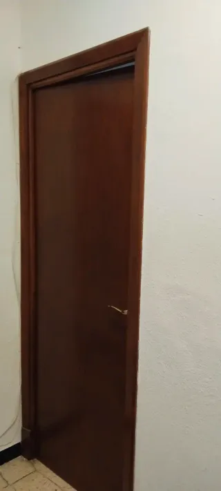 Puerta de interior de madera en tono oscuro, con un diseño clásico y elegante. Ideal para cualquier estancia del hogar. Medida 80x210 / 3 unidades - Material: Madera. - Color: Marrón oscuro. - Incluye manilla.