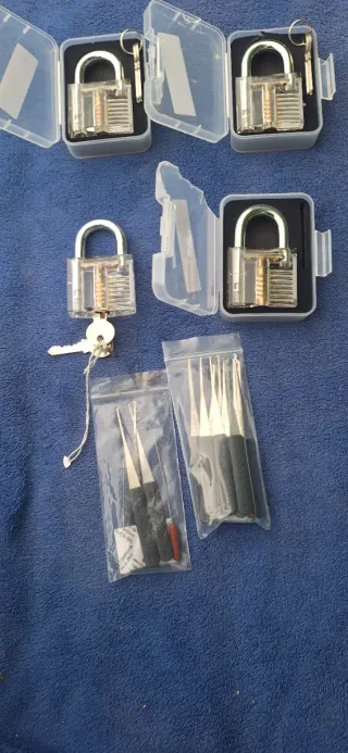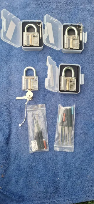 Se vende lote de 4 candados transparentes, perfectos para practicar o aprender sobre cerrajería. - Incluye 4 candados transparentes. - Cada candado viene con su juego de llaves. - Ideales para visualizar el mecanismo interno.