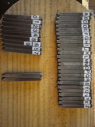 Set de punzones de metal para marcar letras y números. - Incluye juego completo de letras de la A a la Z. - Incluye juego completo de números del 0 al 9. - Tamaño de punzón: 3mm. Regalo BLOCKMIT porque ya no tengo que usarlo