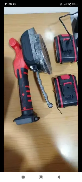 Radial a batería de 21V, ideal para trabajos de corte y desbaste. Incluye dos baterías para mayor autonomía. Producto totalmente nuevo nunca usado. - Incluye dos discos de corte. - Protector de disco. - Empuñadura auxiliar. - Llave de montaje. - Cargador de batería. (El color de los discos o baterías puede ser diferente al de la foto)