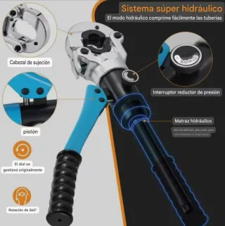 A ESTRENAR Herramienta hidráulica para tubos multicapa, para instalaciones de fontanería profesionales.Fabricada en acero v40CR de alta resistencia. Cabezal giratorio de 360° Pistón hidráulico fiable que aplica hasta 10T de presión. Incluye juego de 5 matrices. para medidas 16mm,20mm, 25mm, 26mm y 32mm, aptos para engarzar tubos de aluminio-plástico y tubos de plástico PPR/PEX/PB/PE/PA. Maletín de transporte. Se hace envío, cualquier duda preguntar, un saludo..