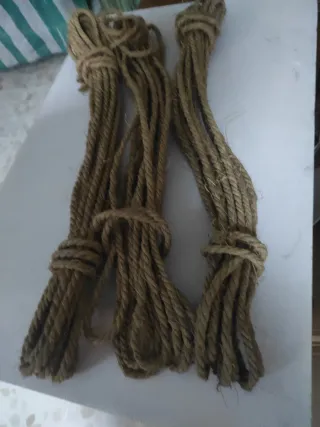 Cuerda de esparto natural, ideal para manualidades o decoración. De 10mt aprox cada una. - Diámetro aproximado de 8 mm. - Textura rústica y resistente. - Color natural del esparto.