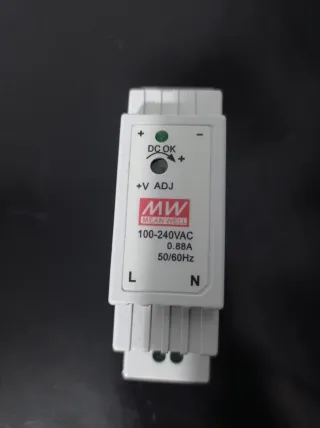 Fuente de alimentación Mean Well para carril DIN. - Modelo: DR15-12 - Entrada: 100-240VAC, 50/60Hz - Salida: 12V 1'25A - Indicador DC OK