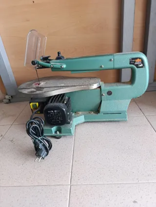 Sierra de marquetería de la marca TOP CRAFT. Ideal para trabajos de precisión. - Color verde. - Protector de seguridad transparente.