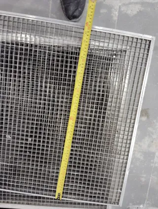 12 unidades de Rejilla metálica para falso techo, con medidas de 60x60 cm. - Material: Metal. - Diseño: Cuadrícula. - Color: acero inoxidable.