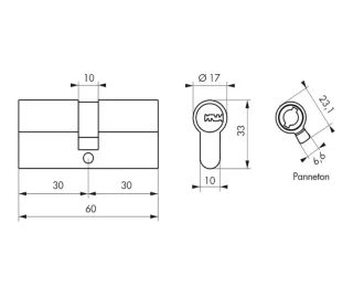 Cilindro de alta seguridad Tesa Assa Abloy TX854060L. - Modelo: TX80. - Incluye 5 llaves. - Tornillo de fijación. 0130