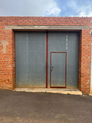 Puerta de hierro para garaje o local. - Material: Hierro. - Color: Gris metálico con detalles en rojo.
