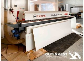 Fabricante HASMAK (Made in Turkey) Modelo HSM512S Año 2010 Observaciones Chapadora de cantos para madera Espesor banda borde: 0,40-2mm. Altura panel: 8-48mm. Velocidad: 12metros/min. Potencia: 11,5Kw, 380v, 50Hz, 18A, presión: 6-8bar. Dimensiones máquina: 4.250x1.040x1.500mm. Peso máquina: 950Kg.