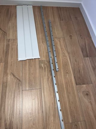 Se vende techo de aluminio con lamas, ideal para reformas. Es un techo ligero y de apariencia moderna. - Fabricado en aluminio. - Diseño con lamas. - Fácil de desmontar. Largo de lama 1,18 cm y de ancho 10 cm 20 lamas completas Largo de perfil 2,34
