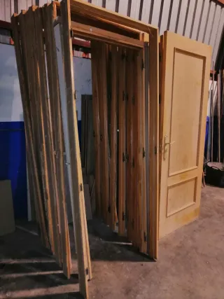 Se venden 5 puertas de madera completas, con marcos, evellecedores y manillas, listas para instalar. Son de madera maciza y se encuentran en buen estado. - Perfectas para renovar tu hogar. - 50€/unidad