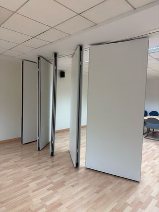 TABIQUE MOVIL ACUSTICO. 650 largo x250 de alto Total 16m2 EN PERFECTO ESTADO Precio negociable. Cristales laminados oficinas invernaderos puertas ventanas mamparas separadoras locales negocios hostelería taller reformas acristalamiento paredes invernadero solarium cerramiento cristaleras barandillas puertas mobiliario muebles tabique movil cortinas pladur insonorizacion