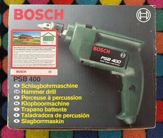Taladro percutor Bosch PSB 400 practicamente nuevo. Ideal para bricolaje. - 400W de potencia. - Velocidad regulable. - Mandril de 10 mm. - Incluye cable de alimentación.