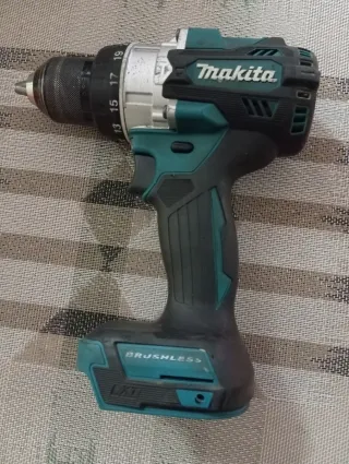 Atornilladora a batería con función Taladro y percutor inalámbrico Makita DHP486 de 18V. Muy bien cuidada, en excelentes condiciones. NO INCLUYE NI BATERÍA NI CARGADOR... - Diseño ergonómico en color negro y turquesa. - Mandril metálico con ajuste de precisión. - Selector de velocidad y par de apriete.
