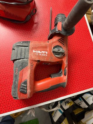 Ojo leer Taladro percutor Hilti modelo TE 4-A22. Funciona, pero el percutor hace ruidos. Se puede cambiar la parte del mandril. - Color rojo y negro. - Mango auxiliar. - Incluye varilla de profundidad. - Cargador y 2 baterías de 5,2 y 3 amp.
