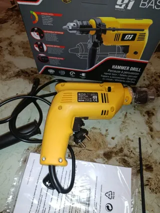 Taladro percutor marca 91 Basic - Potencia de 500W. - Voltaje 220-240V. - Velocidad variable. - Rotación reversible. - Acción de martilleo. - Mandril de 13mm.