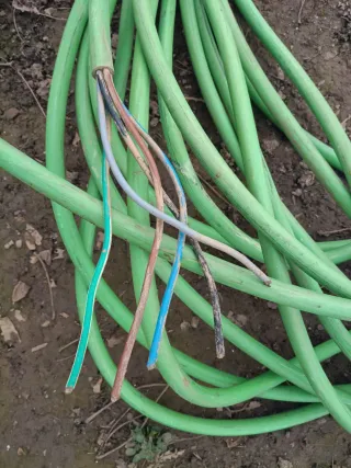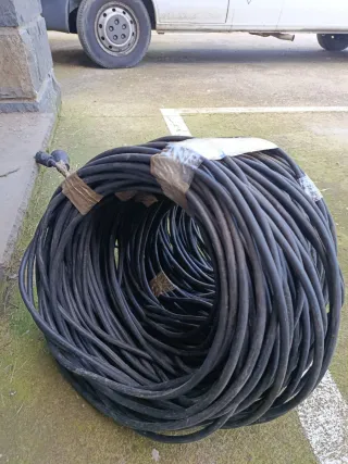 - Manguera eléctrica powerflex - Doble camisa, especial para acometidas o industria. - 10mm2 de sección. - 100 metros en dos trozos de 50 metros cada uno, uno de los trozos está partido a la mitad y empalmado. Precio 120€ - Precio en tienda 280€ los 100 metros - Cable de alta calidad.