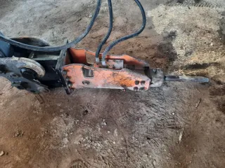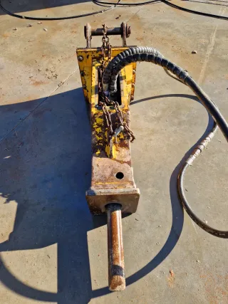 Martillo hidráulico para mini excavadora. Se encuentra en buen estado y listo para su uso. - Diseñado para mini excavadoras. - Incluye mangueras de conexión.