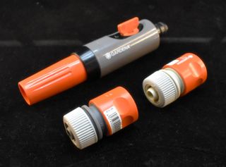 Nuevo: Set terminal de riego 13mm (1/2") con reglaje de presión. Para manguera de 13 mm (1/2") y 15 mm (5/8”). 1 x Lanza de limpieza, 2 x Conector stop