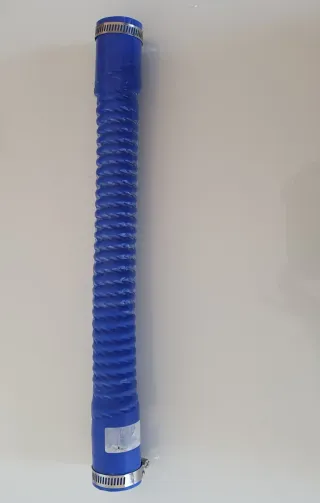 Manguera de silicona azul con diseño flexible y universal. Cuenta con abrazaderas metálicas en ambos extremos para una sujeción segura. - Material: Silicona - Color: Azul - Diseño: Flexible y corrugado - Incluye: 2 abrazaderas metálicas