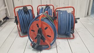 Mangueras de cable para cámaras con conexiones audio/vídeo 3 bobinas de 55 metros y 1 bobina de 35/40 metros pesan 3 de 22 kilos y 1 de 16k Lote de las 4 150 € Bobina individual 75 € A recoger en Guadalajara