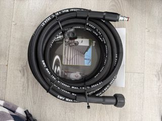 Manguera de repuesto para hidrolimpiadora. - Longitud: 8 metros. - Presión máxima: 180 bar. - Temperatura máxima: 60°C. - Conexiones estándar para hidrolimpiadoras.