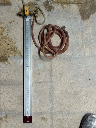 Manómetro de precisión con manguera incluida. Ideal para mediciones. - Escala graduada. - Conexión para manguera. - Válvula de control.