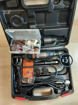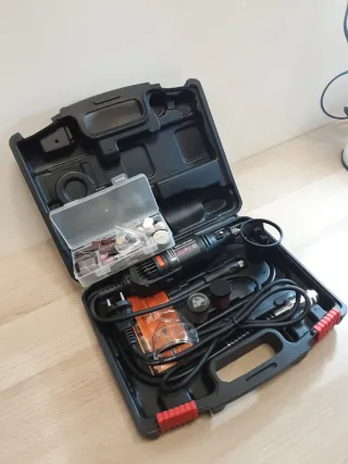 Mini taladro GOXAWEE modelo G4007, ideal para trabajos de precisión. - Incluye un estuche con varios accesorios. - Incluye un accesorio de manguera flexible. - Incluye un protector de seguridad.
