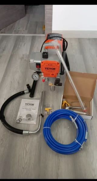Pulverizador de pintura VEVOR de alta presión. - Modelo 450. - Potencia de 1800W. - Incluye manómetro. VEVOR Pulverizador de Pintura 1800 W Máquinas Pintura Airless 1,8 L/min Pistola de Pulverización Eléctrica sin Aire Presión Máxima 3000 PSI con Manguera de 9 m para Pared, Mueble, Exterior, Interior