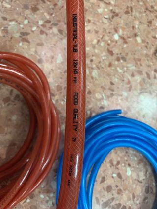 Manguera de agua roja (12 m) y azul (11m) transparente