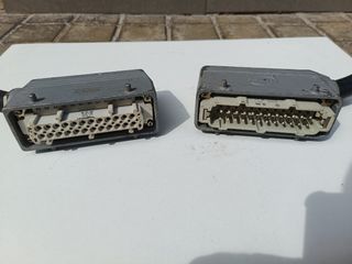 Se venden conectores Harting de 24 contactos. Están en buen estado. Hay conectores machos y hembras. Los pins de las conexiones están muy bien, aún conservan el brillo los pins. Dejo todos los conectores los 8 conectores a precio de uno en 50 eur Estos conectores se pueden utilizar con una sola manguera y así tener muchos circuitos al mismo tiempo. - Marca: Harting - Número de contactos: 24 - Color gris metálico PRECIO NEGOCIABLE Atiendo wassap 658511085
