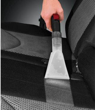 Lijadora de jirafa eléctrica en color rojo y negro. - Mango extensible. - Manguera de aspiración. - Cable de alimentación.