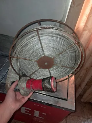 Se vende boca de incendios equipada, lista para su instalación. - Manguera enrollada en su soporte. - Boquilla con ajuste de chorro. - Carcasa metálica protectora. El único desperfecto que tiene es el óxido de alrededor.