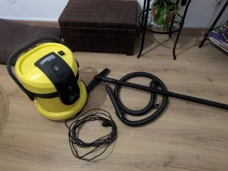 Aspirador Karcher SE 4002 de color amarillo y negro. Ideal para limpieza de suelos y tapicerías. - Incluye manguera y tubo de aspiración. - Cable de alimentación. Posibilidad de venir a verla en Valencia, zona de Algirós