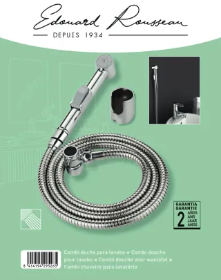 Set de ducha de mano cromada para lavabo, marca Edouard Rousseau. - Incluye ducha, manguera y soporte. - Garantía de 2 años.